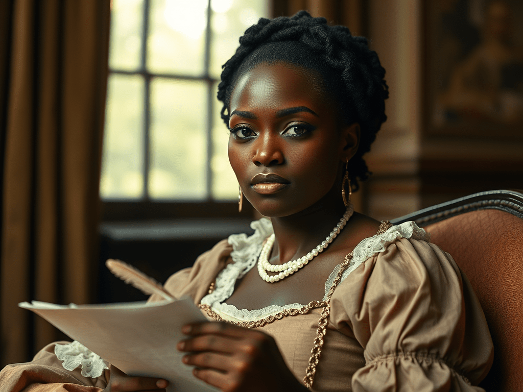 Phillis Wheatley a fost prima poetă afro-americană publicată, reprezentând o voce proeminentă în literatura americană din secolul XVIII. Născută în Senegal, Wheatley a fost adusă în America ca sclavă în 1761, unde a fost cumpărată de familia Wheatley, care a recunoscut rapid potențialul ei intelectual. Educația sa, care a fost rar întâlnită pentru o femeie afro-americană din acea perioadă, i-a permis să dezvolte abilități literare remarcabile, culminând cu publicarea primei sale cărți de poezie, Poems on Various Subjects, Religious and Moral, în 1773. Wheatley a devenit o figură simbolică, contestând stereotipurile rasiale și promovând ideea că oamenii de culoare pot contribui semnificativ la cultura și literatura americană.
