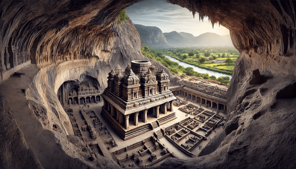O explorare a istoriei și arhitecturii complexe Ellora, cu un focus special pe Templul Kailasa.