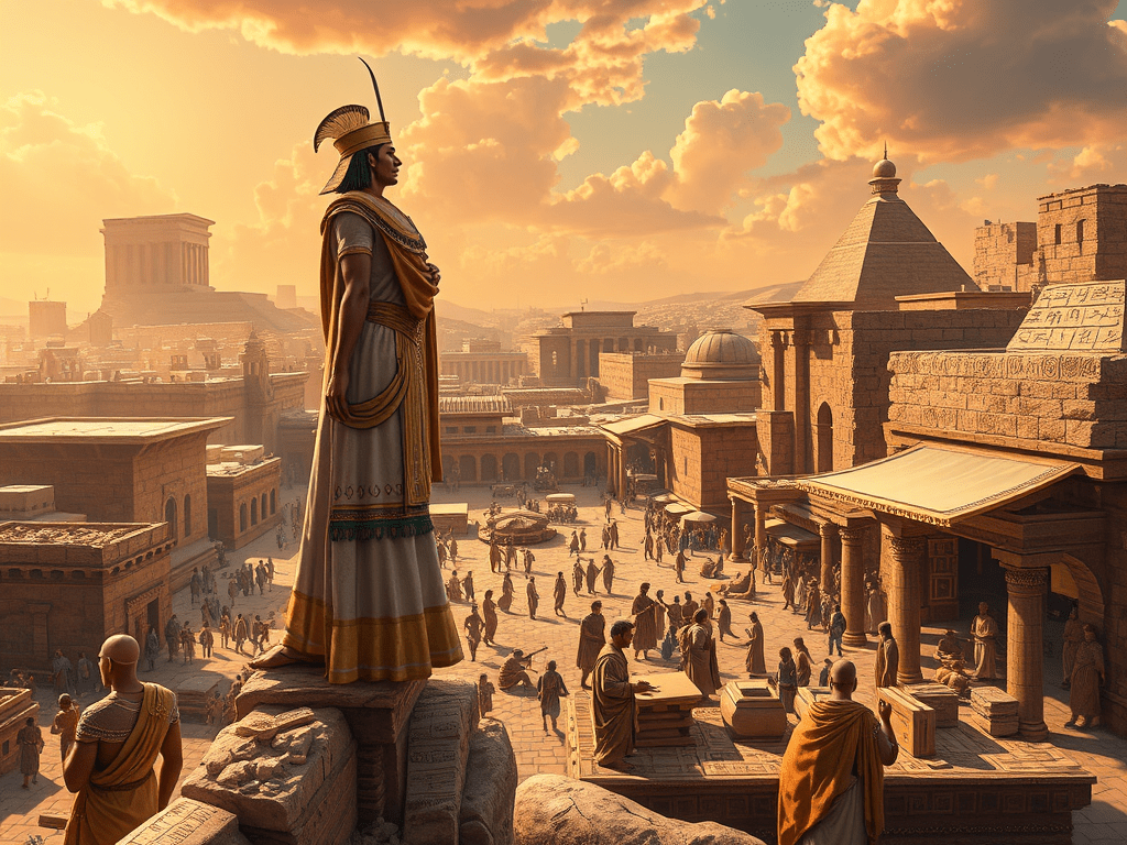 Vântul cald al Mesopotamiei se ridica dinspre Eufrat, aducând cu el ecourile timpului. Sub soarele arzător, orașul Uruk înflorea, zidurile sale masive străjuind case de lut, temple uriașe și piețe forfotitoare. Aici, în acest colț al lumii, omul începuse să domolească haosul naturii, să construiască, să scrie și să se îndoiască de zei. În piețele aglomerate, negustorii vindeau grâne, ulei și textile, în timp ce preoții ofereau sacrificii la templele dedicate lui Anu și Inanna.