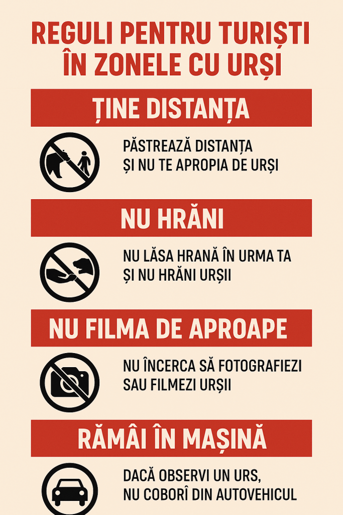 - Absența campaniilor de educație – niciun material clar pentru turiști despre ce să NU faci când vezi un urs.