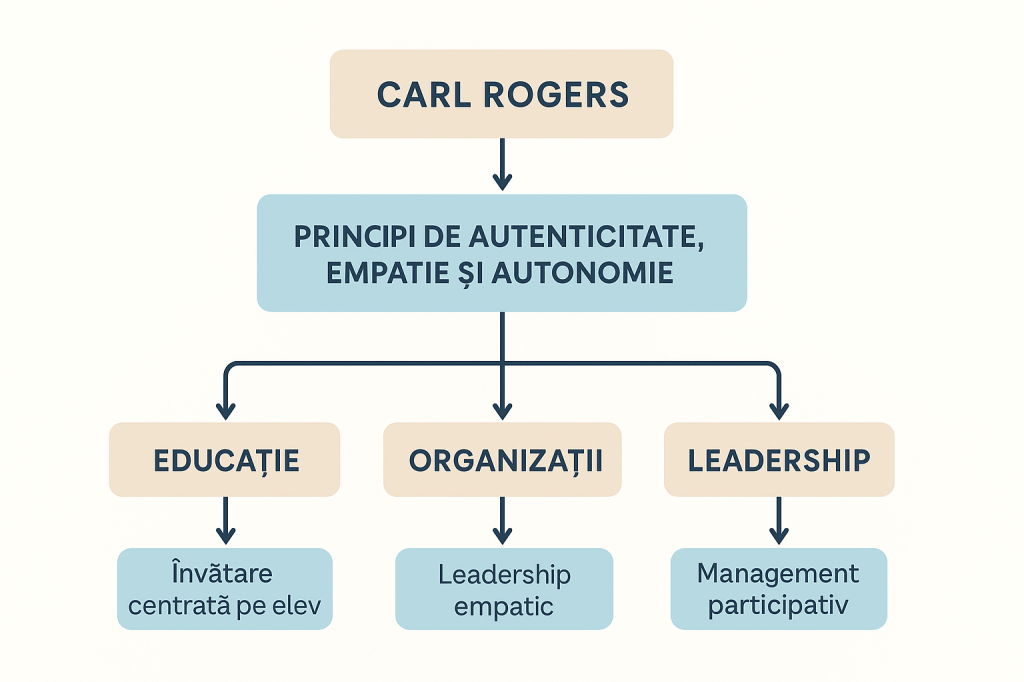 - În mediul organizațional, principiile rogersiene au influențat concepte precum leadership-ul empatic și managementul participativ.